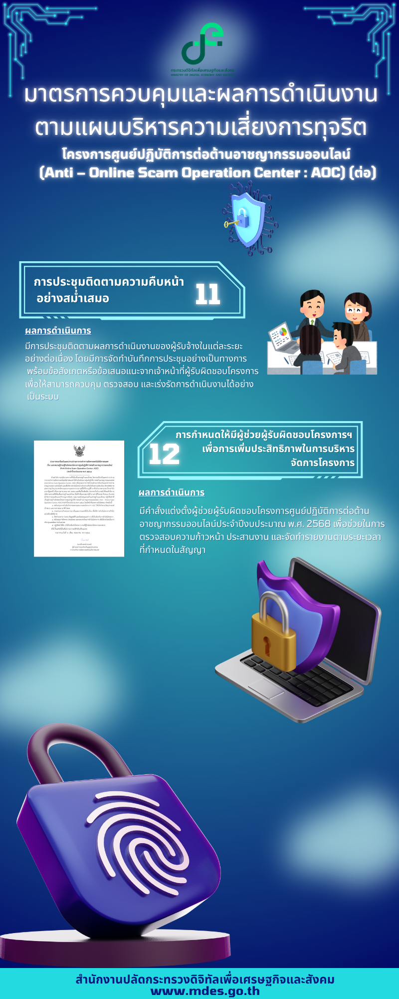 ทั้งนี้ การดำเนินการดังกล่าวจะช่วยสร้างสภาพแวดล้อมดิจิทัลที่ประชาชนสามารถใช้เทคโนโลยีได้อย่างมั่นใจ และปลอดภัย พร้อมรับมือกับความท้าทายใหม่ๆ ในยุคดิจิทัลได้อย่างมีประสิทธิภาพ