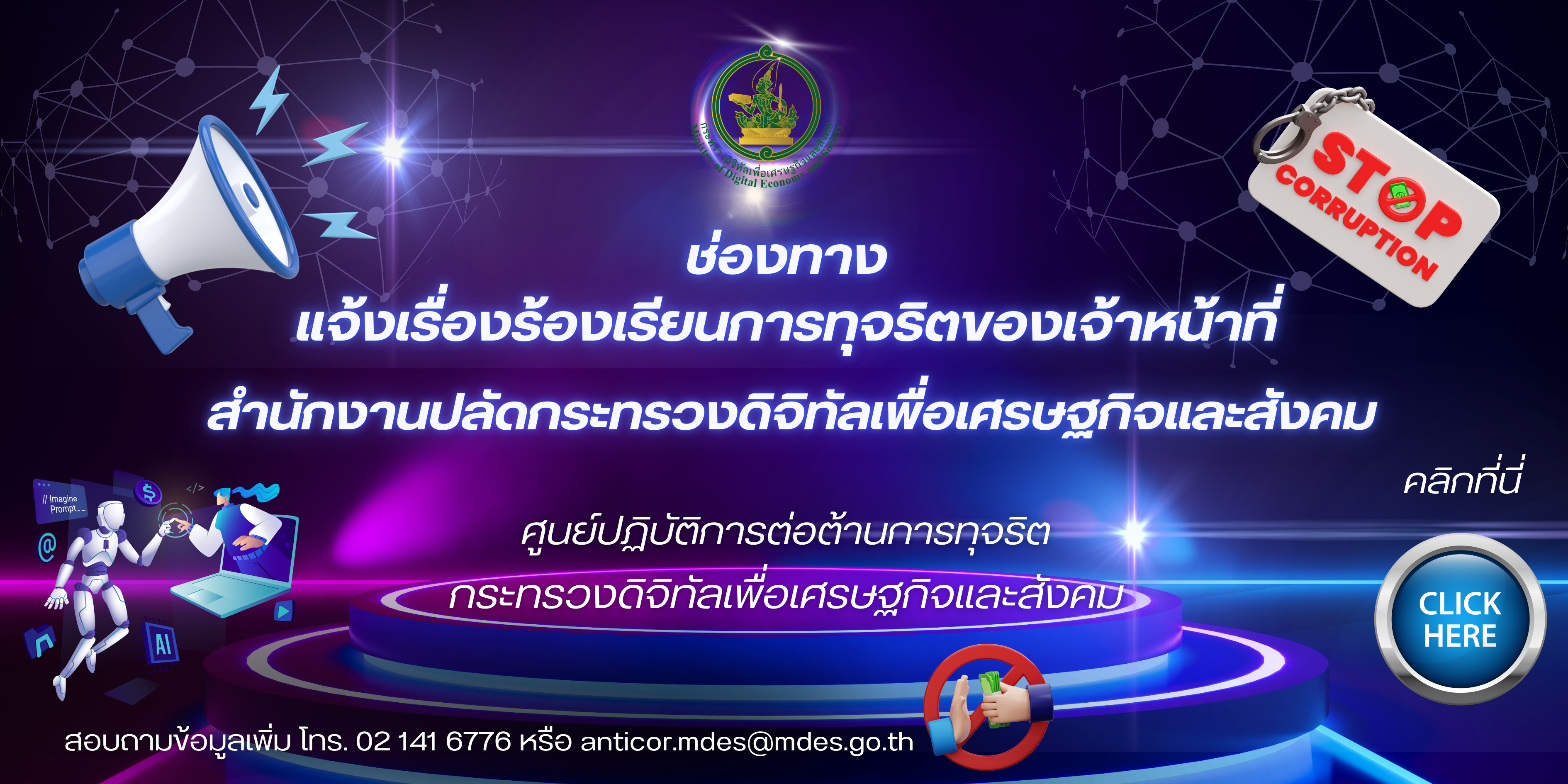 | วิสัยทัศน์ | "กระทรวงดิจิทัลฯ ใสสะอาด ปราศจากทุจริต" |