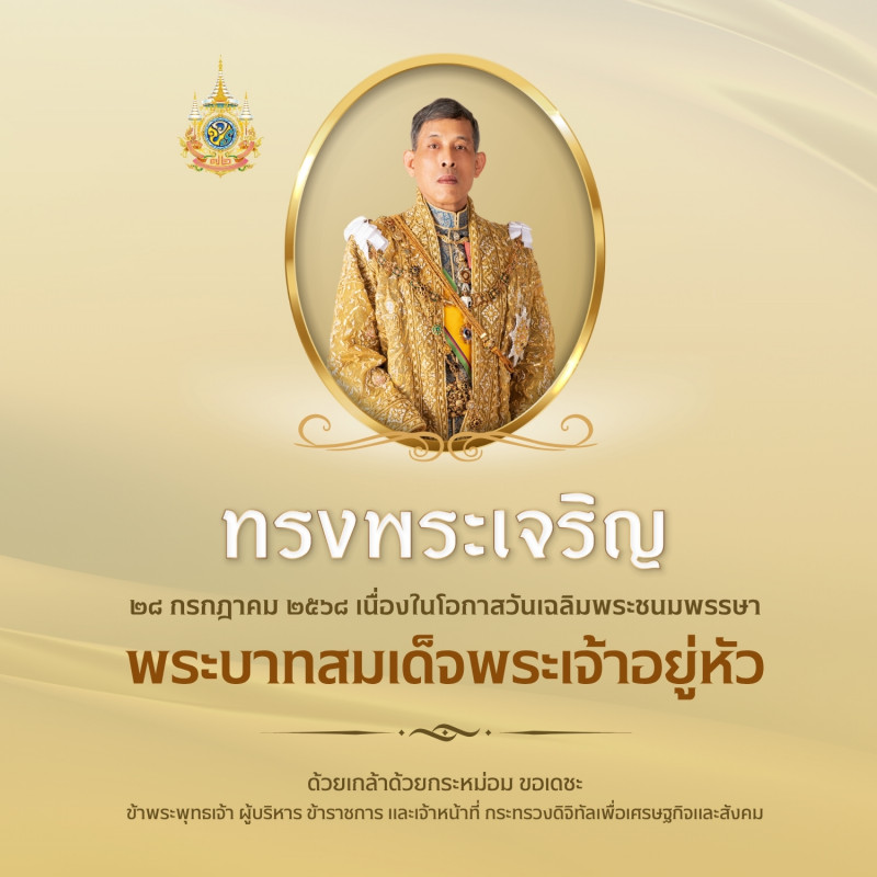 ขอเชิญร่วมลงนามถวายพระพรชัยมงคล พระบาทสมเด็จพระปรเมนทรรามาธิบดีศรีสินทรมหาวชิราลงกรณ พระวชิรเกล้าเจ้าอยู่หัว เนื่องในโอกาสวันมหามงคลเฉลิมพระชนมพรรษา วันที่ ๒๘ กรกฎาคม ๒๕๖๘